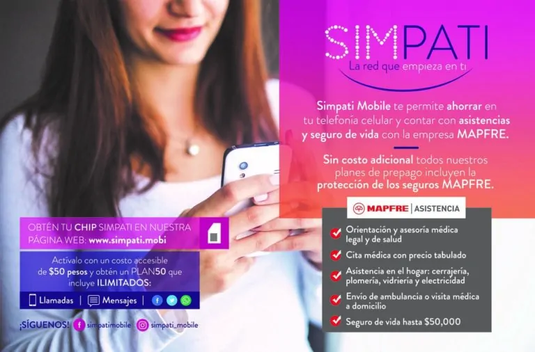 Así mismo, SIMPATI tiene una alianza con la aseguradora MAPFRE que asistirá y ayudará a las mujeres a sentirse más protegidas durante sus actividades cotidianas y podrá beneficiar a sus familias a través del seguro de vida que se les otorga automáticamente al tener cualquier plan de prepago.